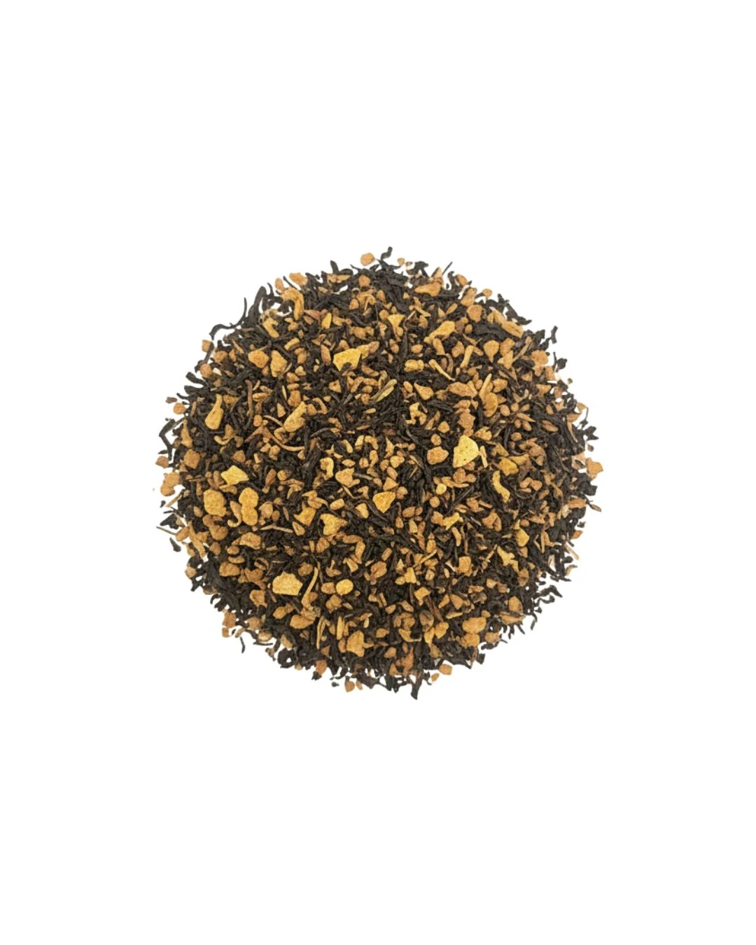 Thé noir*(33%), cannelle*, poivre rose*, gingembre*, clous de girofle*, cardamome*, Graine de chai*, éclats de fèves de cacao*, écorces d'orange*, fleurs*.
