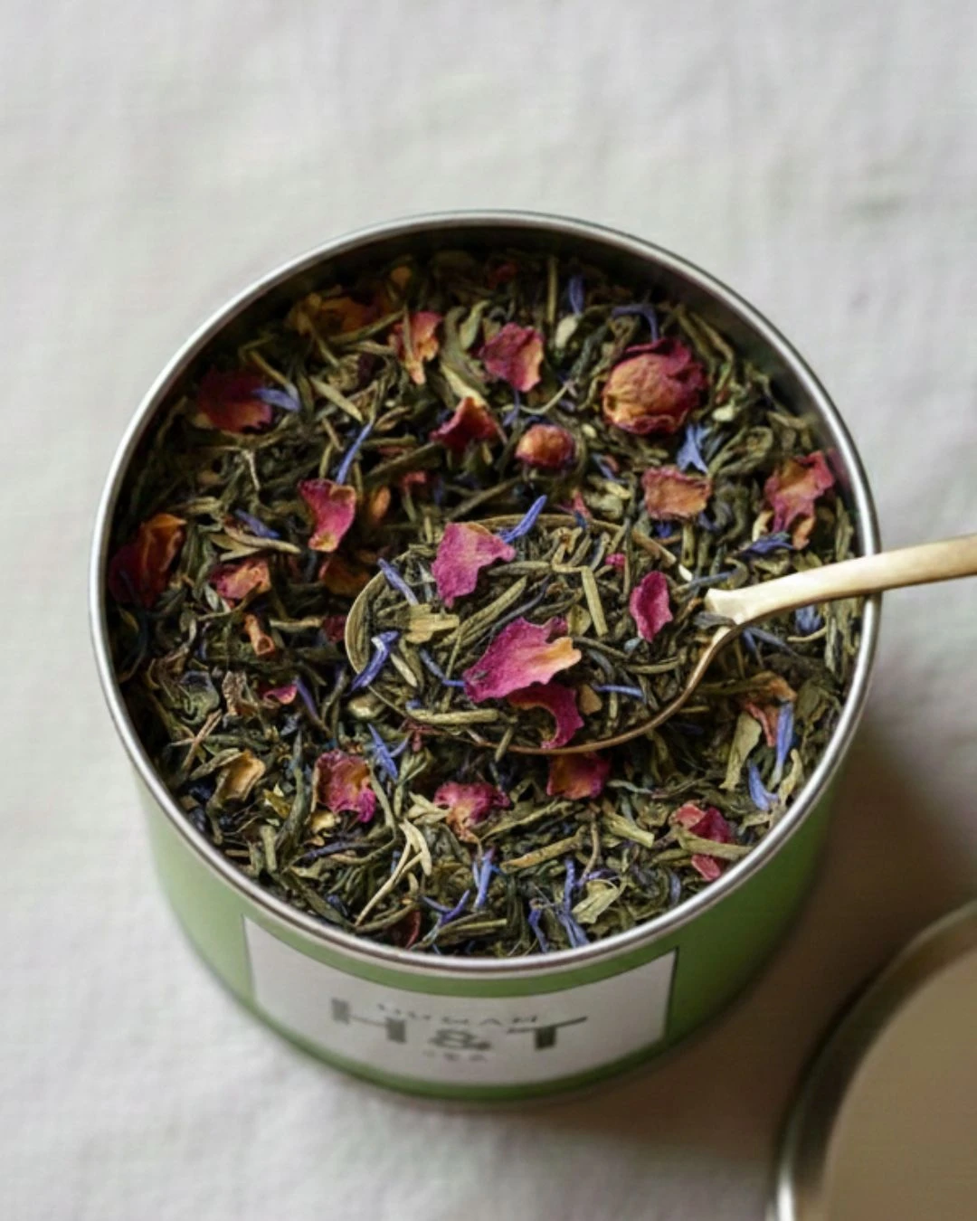 Très bel assemblage de thé vert, coco, amandes et pétales de rose pour une tasse délicieusement gourmande et raffinée.