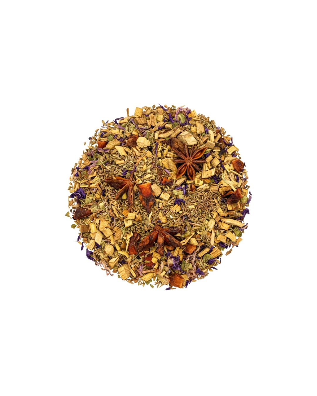 cannelle*, poivre rose*, gingembre*, clous de girofle*, cardamome* graines de chia*, éclats de fèves de cacao*, écorces d‘orange*, fleurs*.