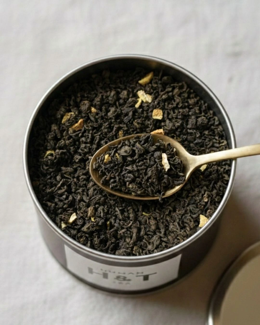 Thé noir de Ceylan, écorces d’orange et huile essentielle de bergamote
