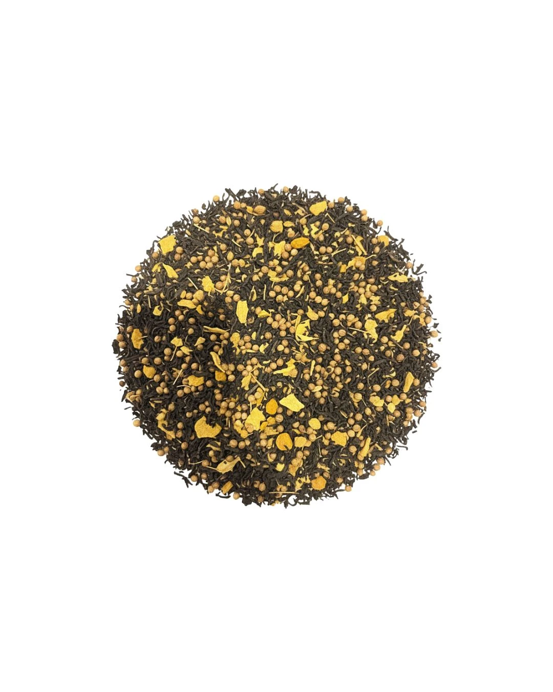 Thé noir*(33%), gingembre*, coriandre*,racine de curcuma*, cardamome*, clous de girofle*, muscade*