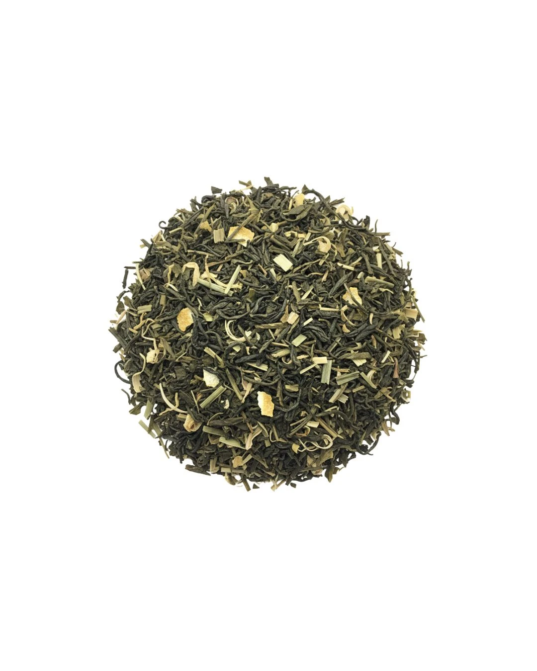 Thé vert*, écorces de citron*, citronnelle*, huile essentielle de citron et d'orange*.