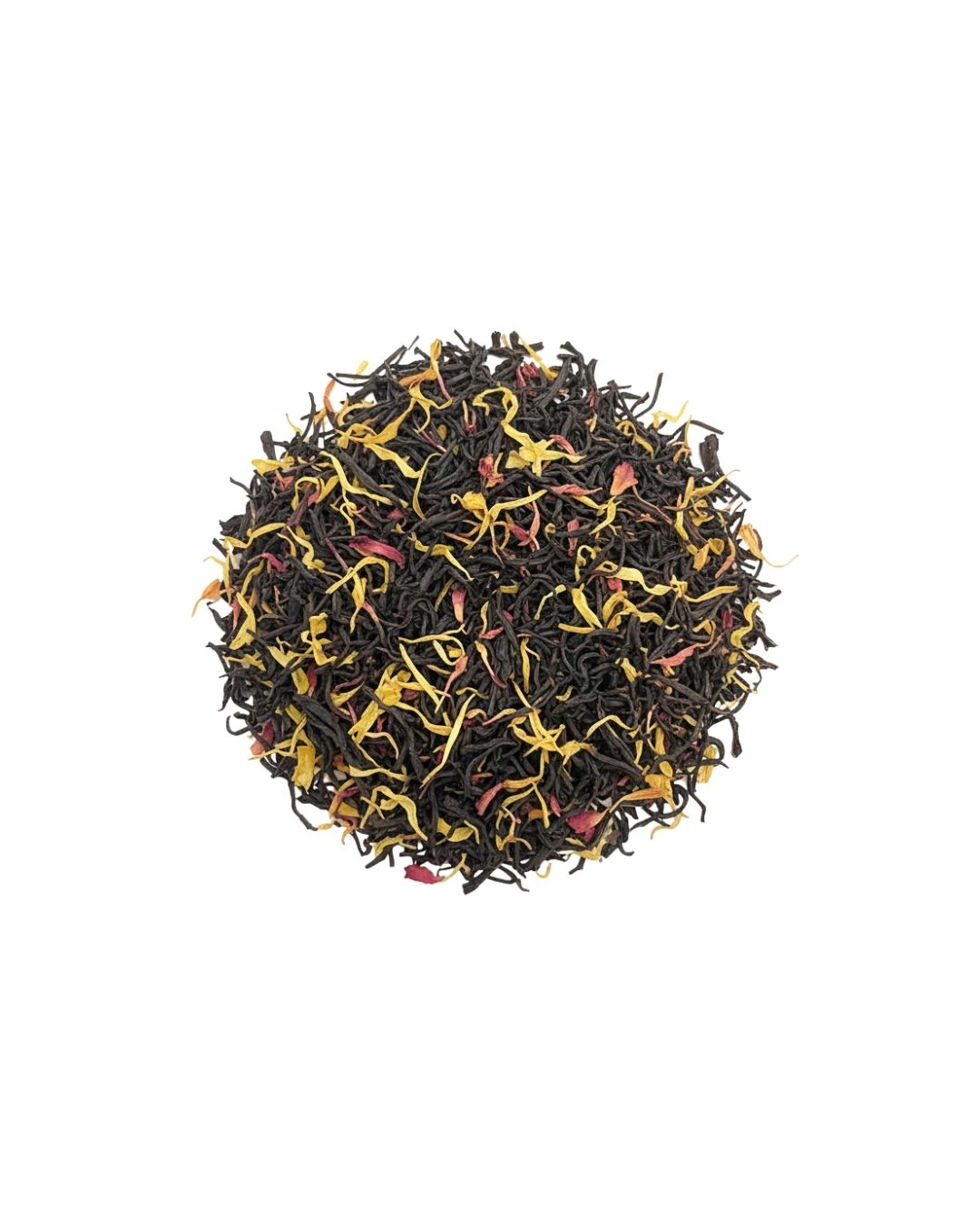 Thé noir, arôme, orange, écorces d‘orange et fleurs.