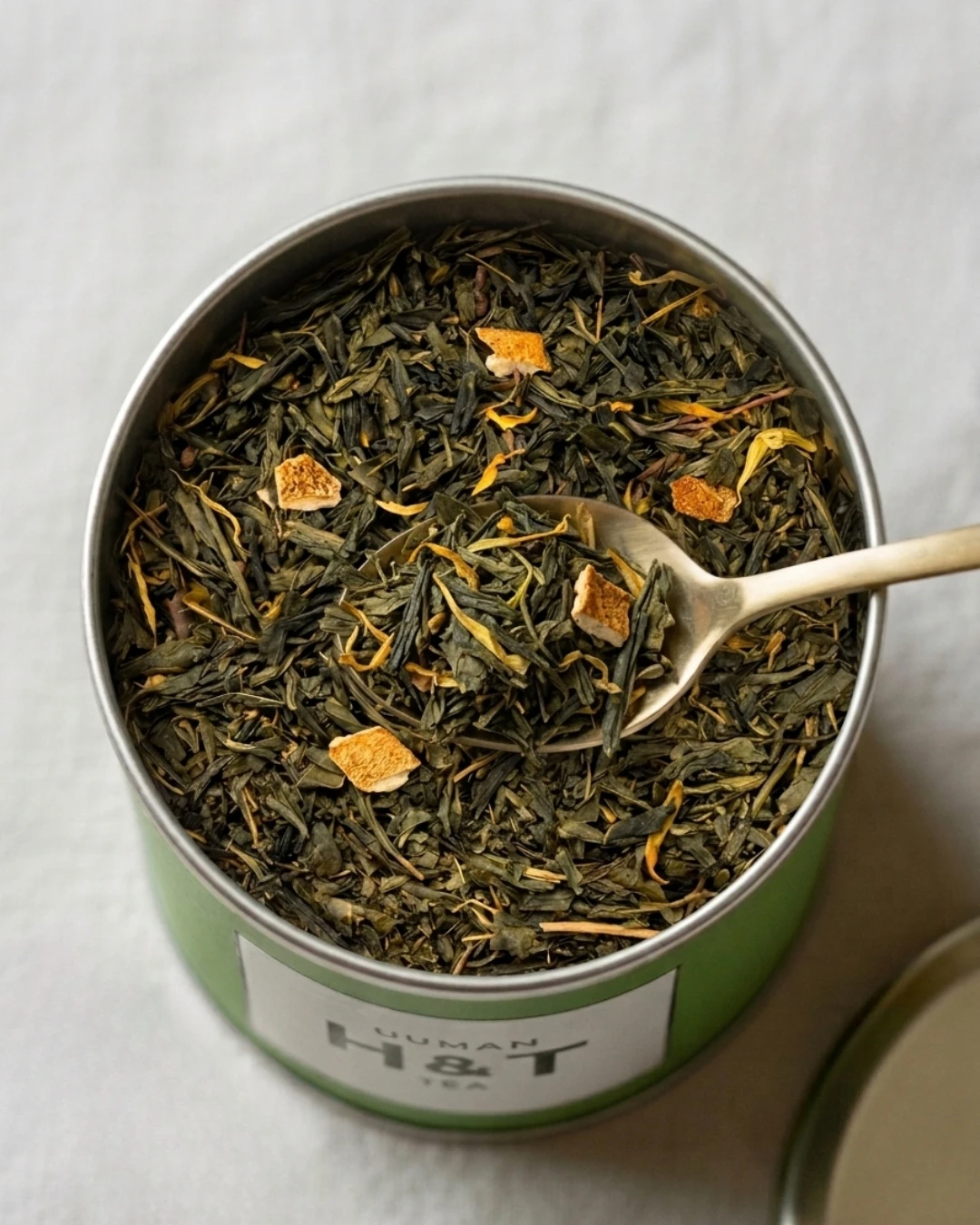 Le thé vert Yoko est un mélange équilibré de thé vert et de mandarine, un thé fruité à l’arôme frais et délicat.